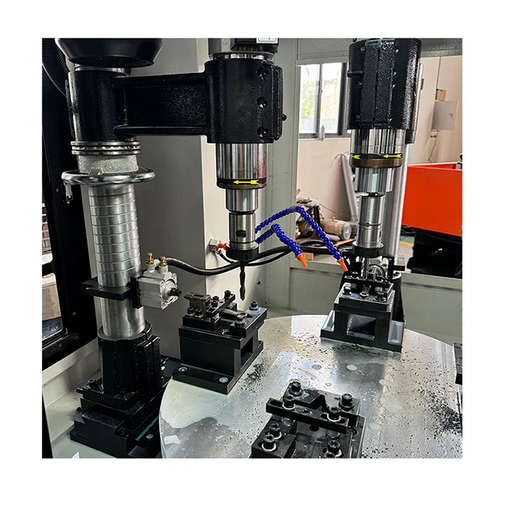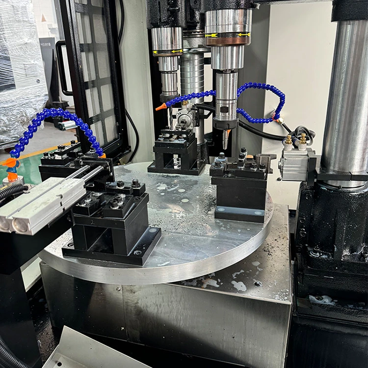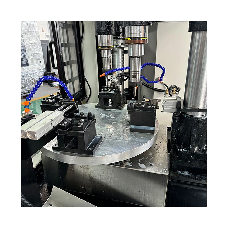 Štiriosni CNC gramofon Compound je inteligentna delovna postaja, ki vključuje rezkanje, vrtanje, narezovanje navojev in druge postopke. Jedro je rotacijska miza, opremljena s štiriosnim CNC sistemom in štirimi obdelovalnimi vreteni. To pomeni, da je mogoče štiri različne obdelovance obdelovati hkrati ali zaporedno in več procesov ali delov je mogoče dokončati v enem ciklu, kar močno zmanjša število vpenjalnih časov in čakalni čas.